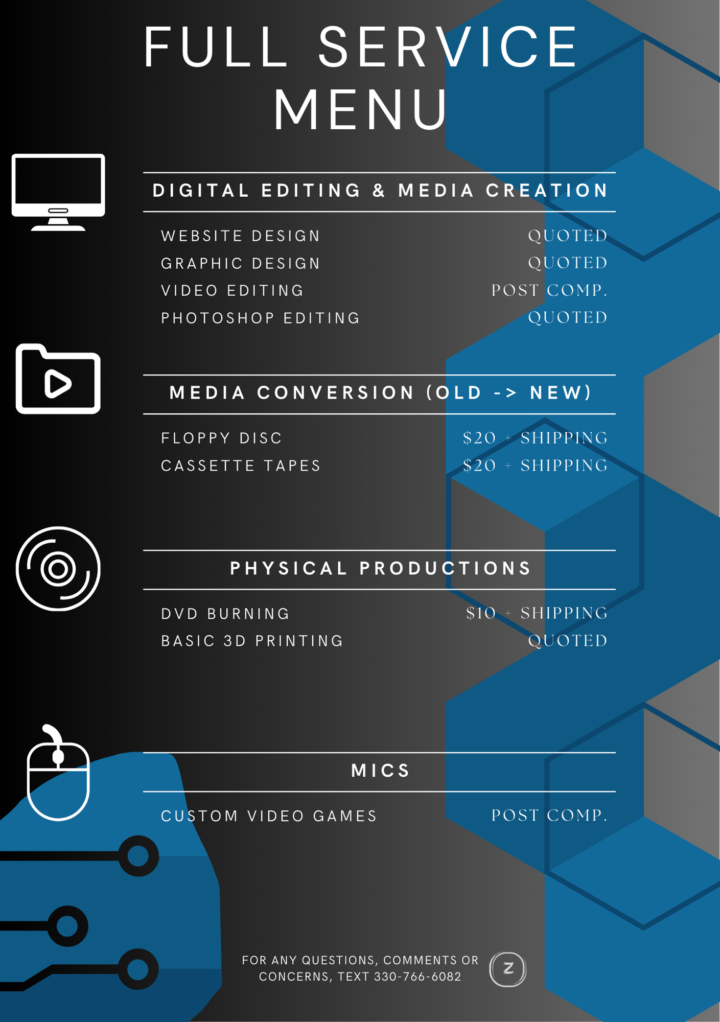 Need to request a commission? Would you like to inquire about my skills? Background? Qualifications? Perhaps you just want to say hi? Whatever the case may be! Feel free to send me a message. You can reach me by email, phone, or any of the linked social medias I have.